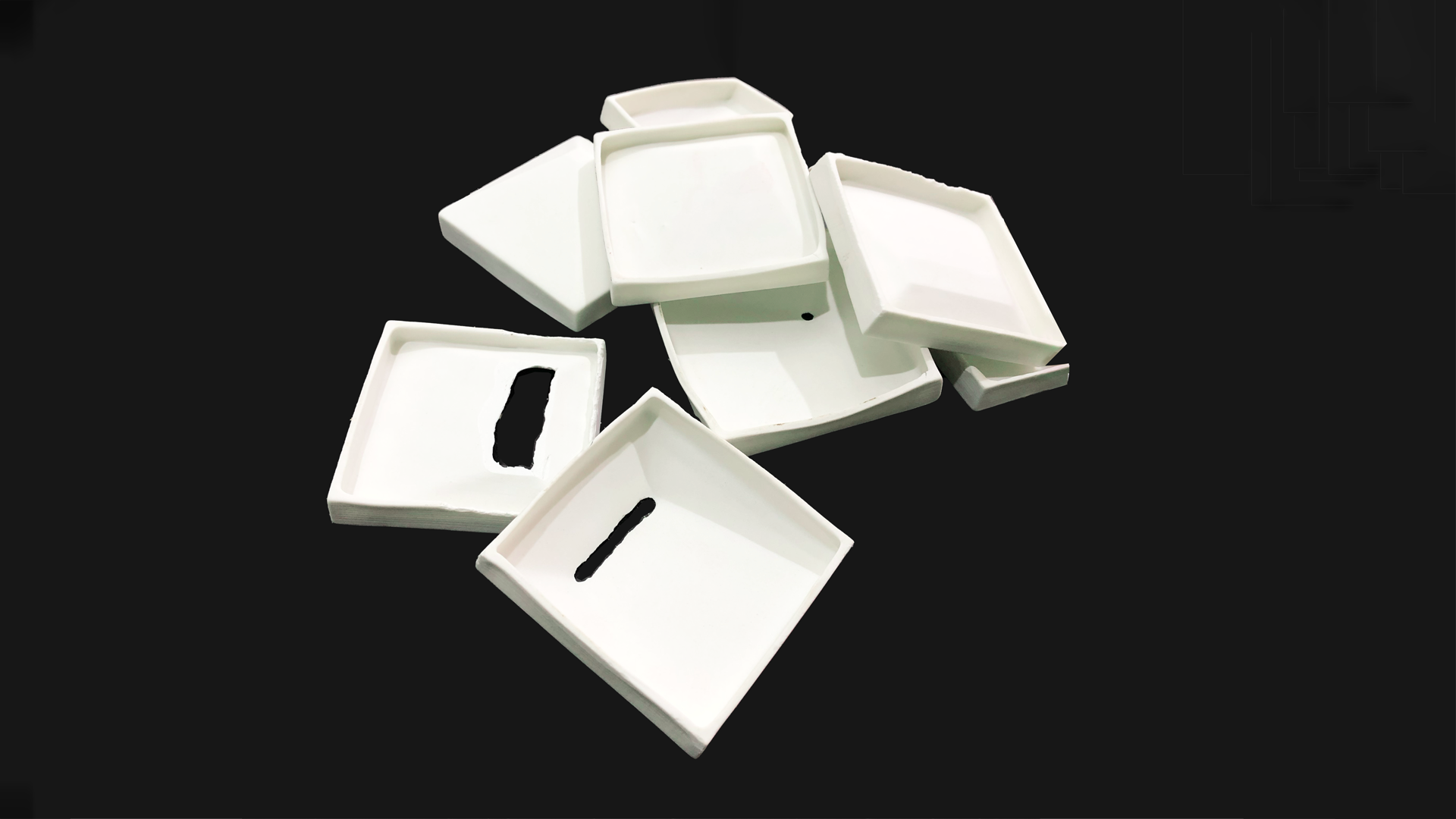 • Portioning: 100ml ceramic mix with a composition of 30 % porcelain waste powder and 70% liquid porcelain clay as raw material and additional 5-10% water