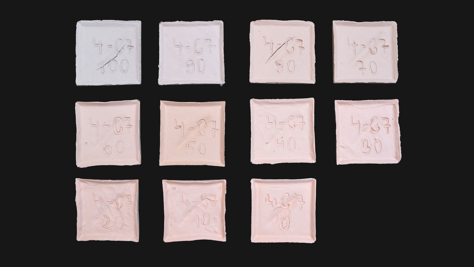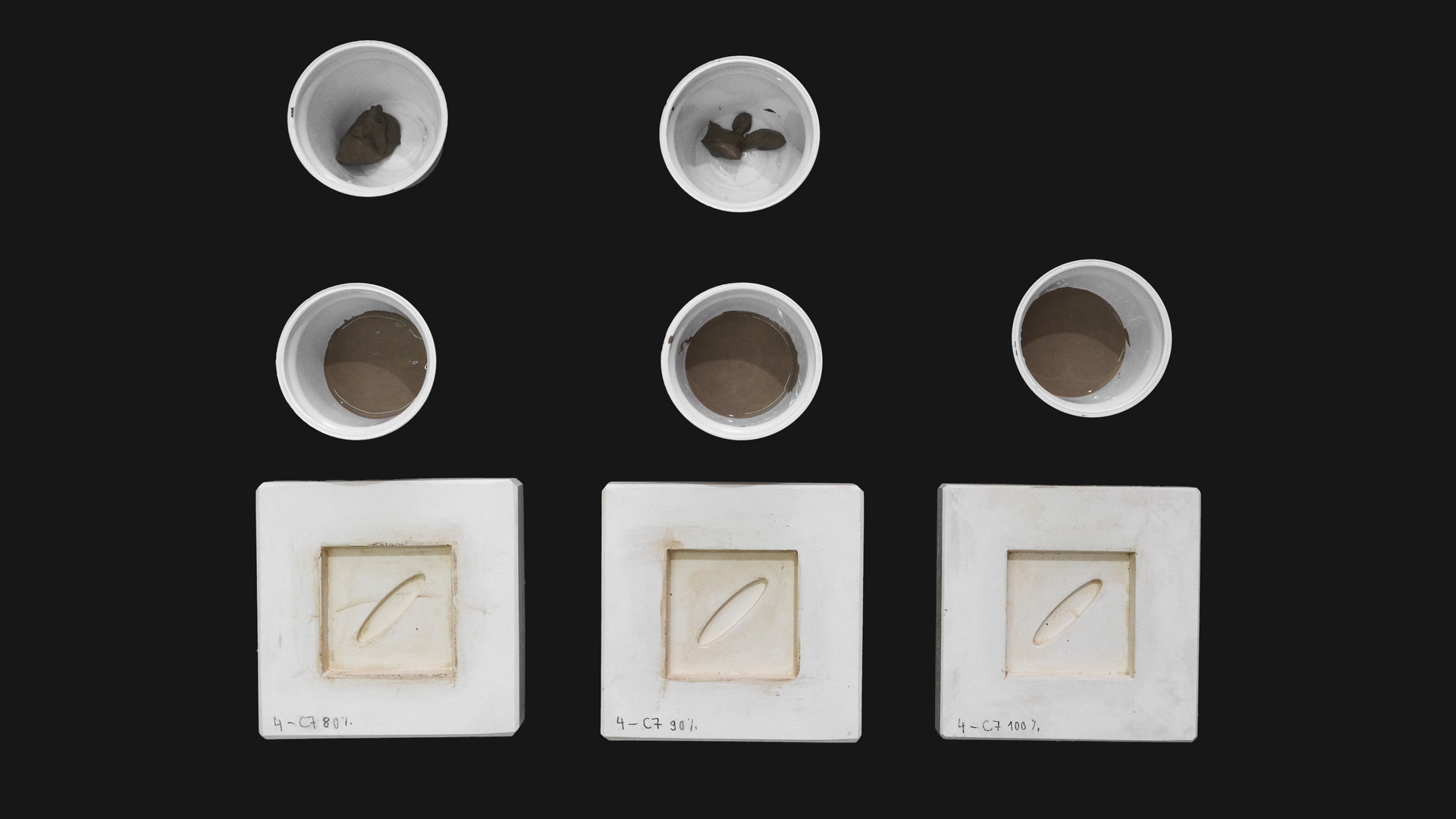 • Portioning: 100ml of ceramic paste with a composition of 20 % Bajouca / rehydrated bio-based terra-cotta clay(4) and 80% liquid sludge from wastewater treatment (C7)