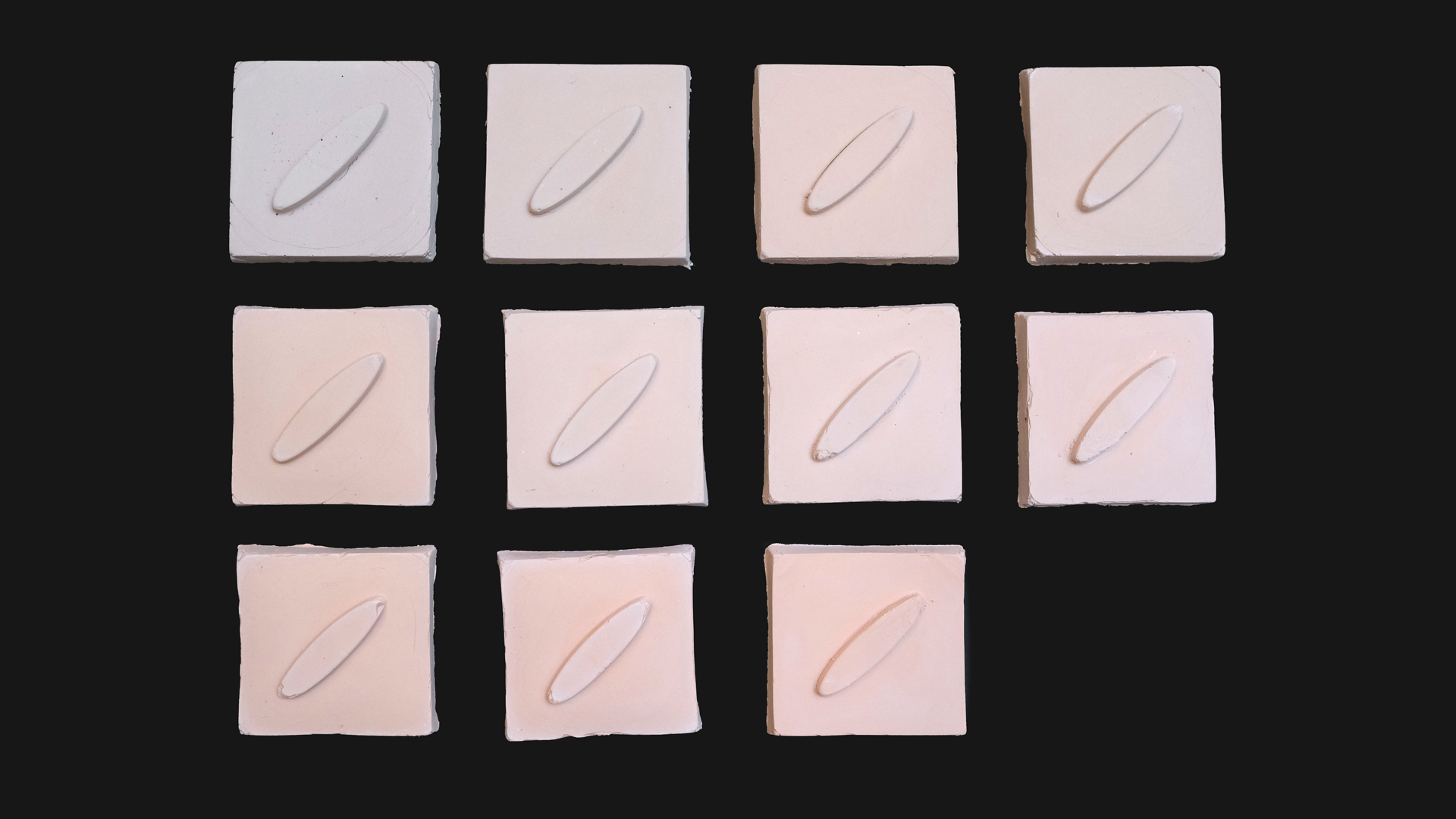 Material sample tile is made with residues from wastewater treatments from the ceramic production and leftover clay.