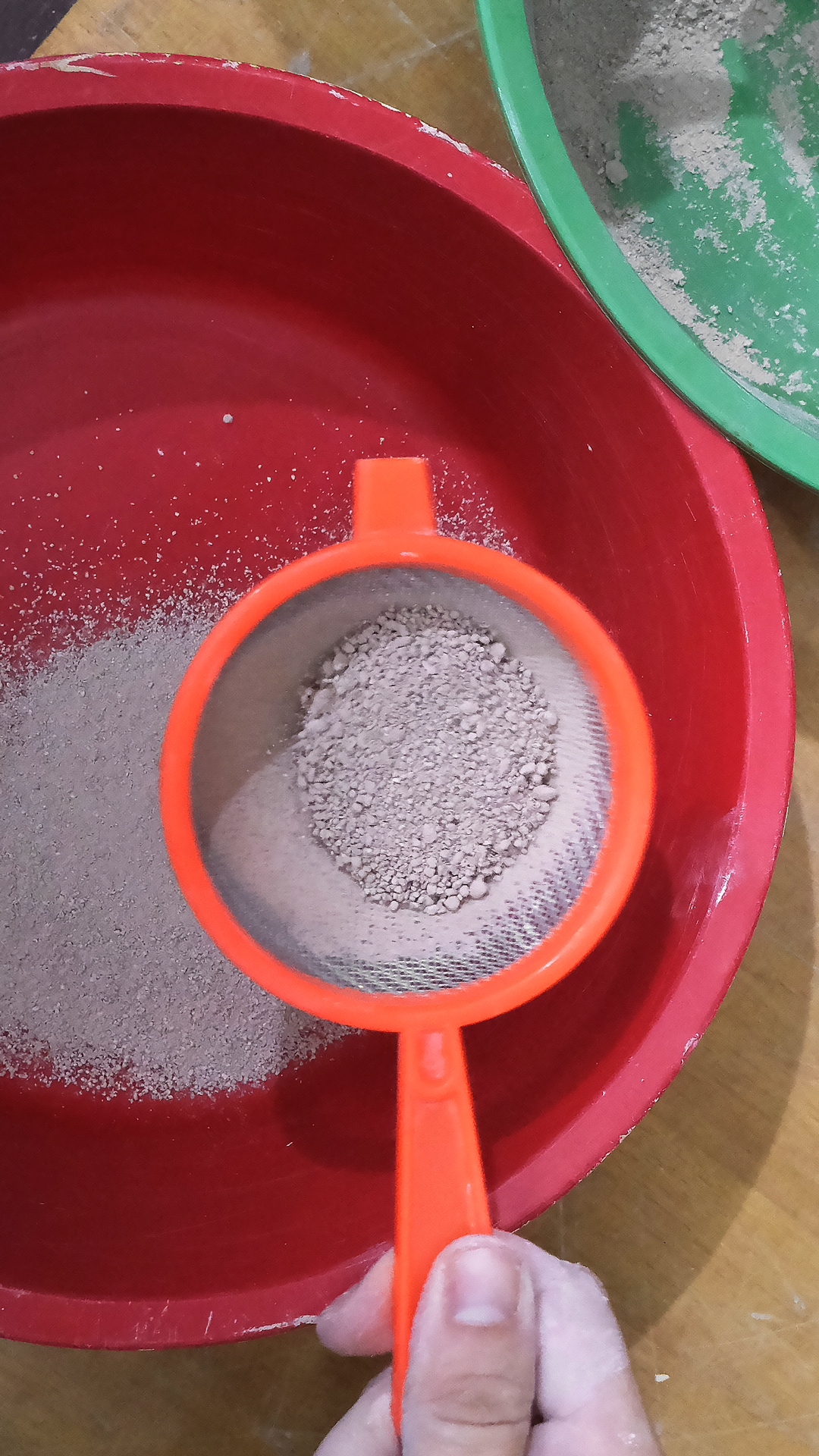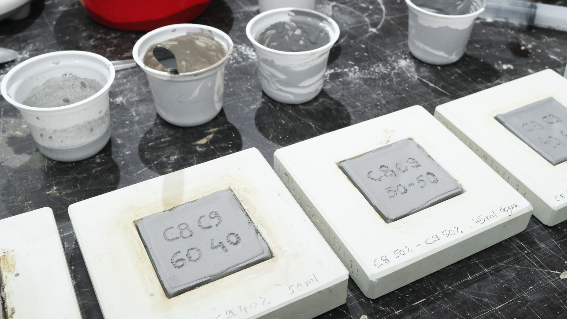 • Portioning: 100ml of ceramic mix with a composition of 60 % dry mud (C8) and 40% dedusting powder (C9)