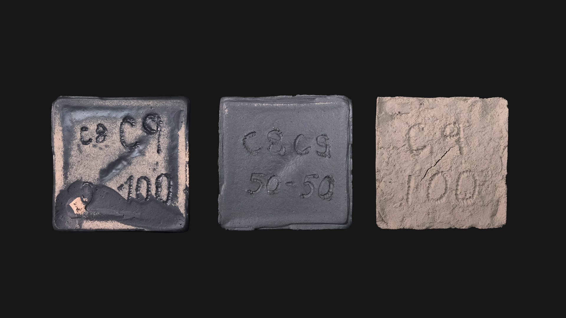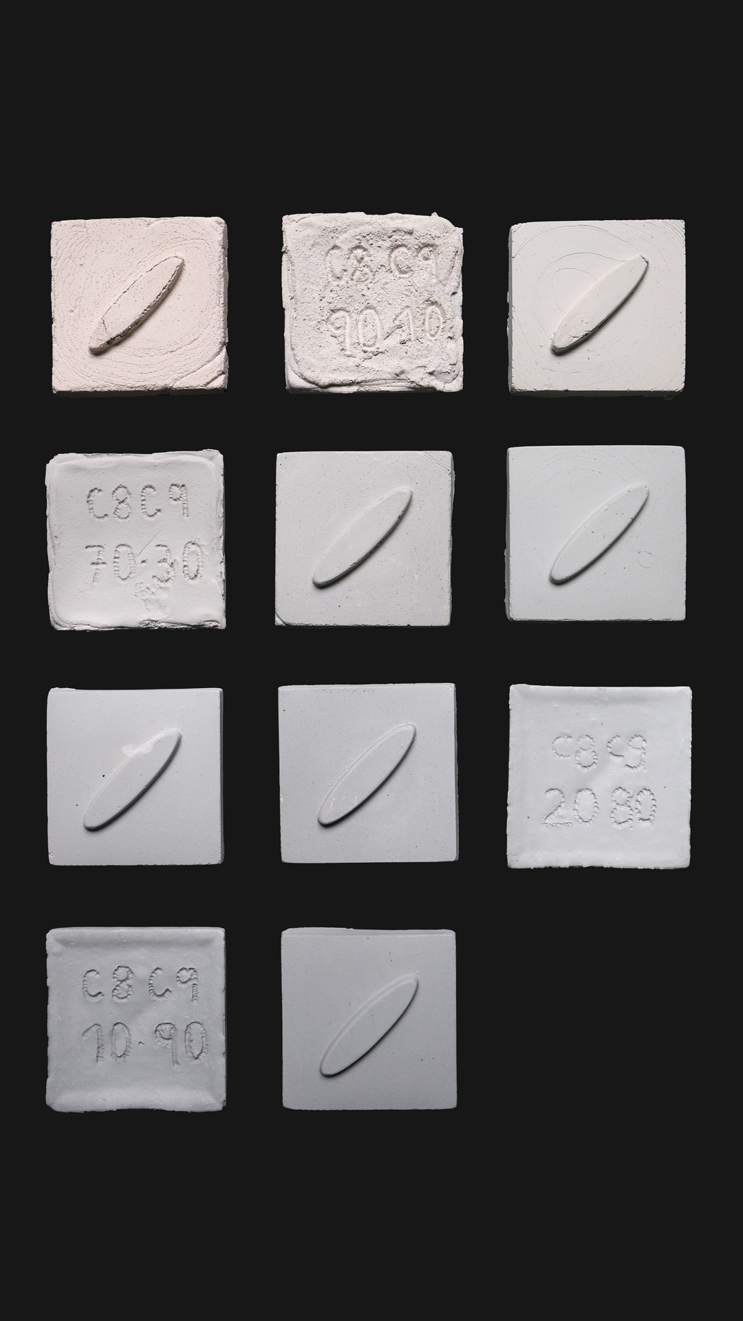 Material sample tile is made with mud - residues from wastewater treatments (C8) and industrial dedusting powder (C9), both waste materials are from the ceramic production from the factory Grestel S.A. in Vagos, Aveiro, Portugal.