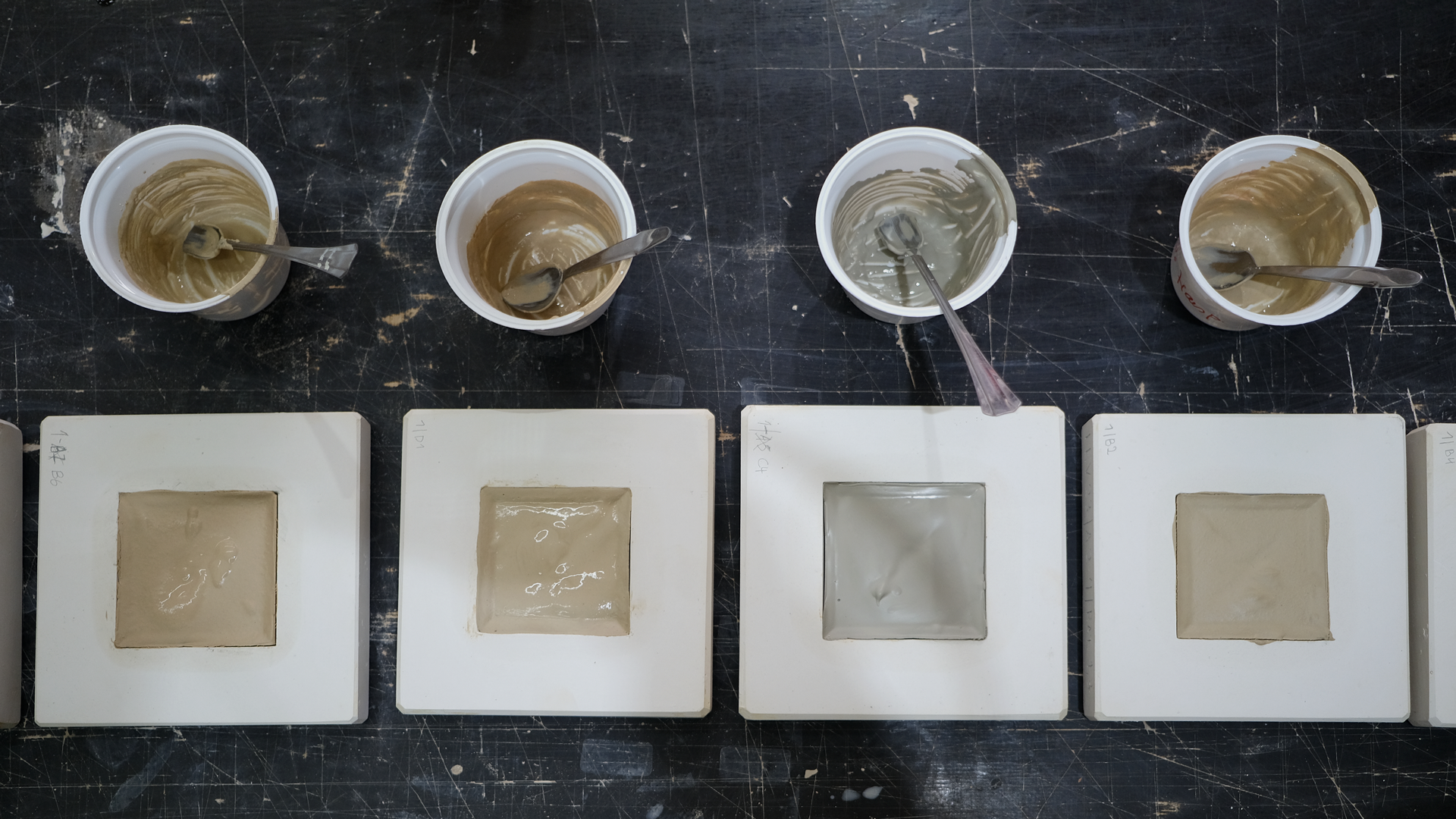 • Portioning: 100ml of ceramic paste with a composition of 30 % waste powder and 70% liquid raw material and additional 5-10% water